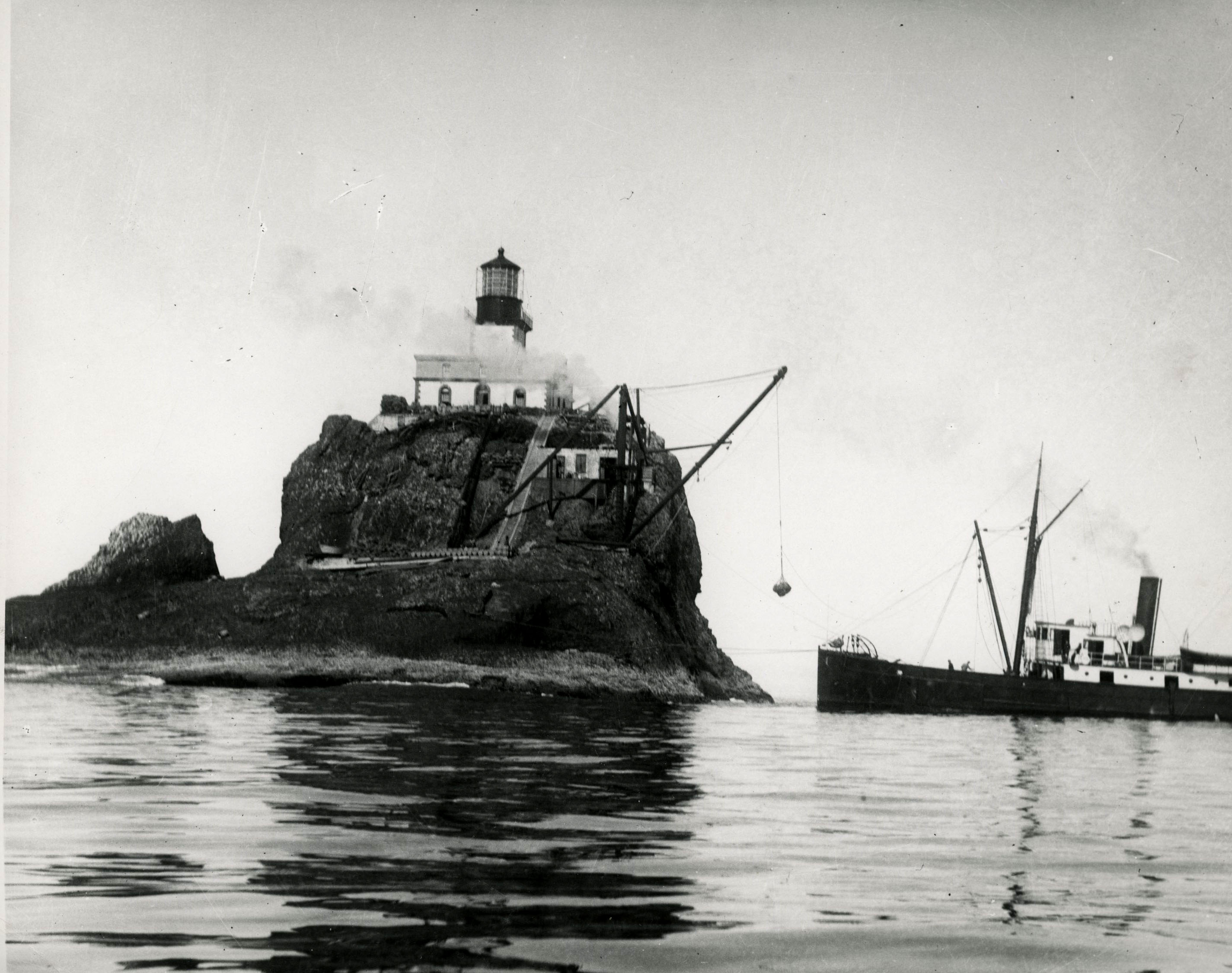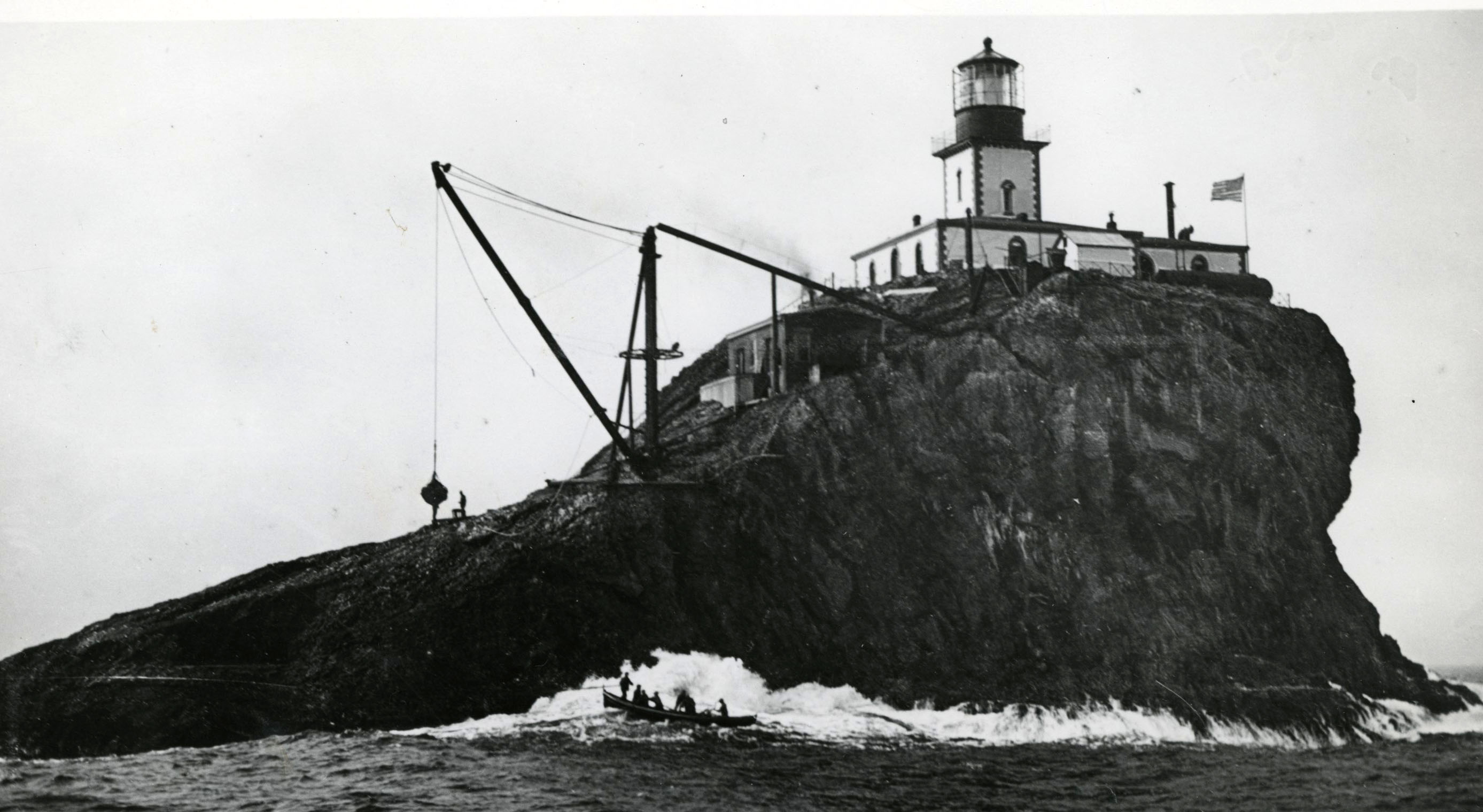 Building a lighthouse on Tillamook Rock was perilous. The first person hired to undertake a survey, thirty-eight-year-old master mason and lighthouse builder John R. Trewavas of Portland, missed his footing on the eastern face of the Rock, and surging waters swept him into the sea. Local craftsmen were reluctant to work on the Rock, especially after Trewavas’s death, and construction foreman Charles A. Ballentyne hired eight skilled quarrymen from outside the area. The quarrymen stayed at Fort Canby, near Ilwaco, Washington, while awaiting the chance to slip out through storms to Tillamook Rock.