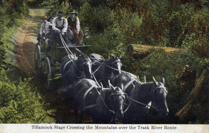 It was a two-day trip for passengers on the North Yamhill and Tillamook Stage Line (a one-way ticket cost five dollars). Train service from Portland brought passengers into North Yamhill, where they caught the stage to Fairdale and spent the night. The stage departed at six in the morning and arrived in Tillamook at four in the afternoon. The trip from Tillamook included an overnight stay at the Trask House, a hotel situated at the bottom of the ascent over the mountains, with a scheduled arrival in North Yamhill at two in the afternoon.