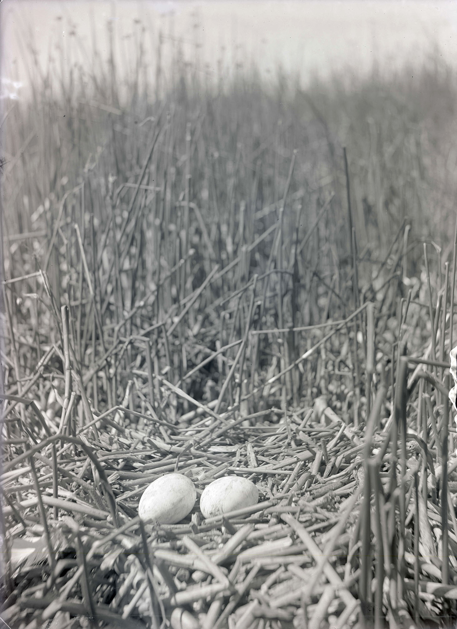 Pelican nest and eggs in the tules, Malheur, 1908.