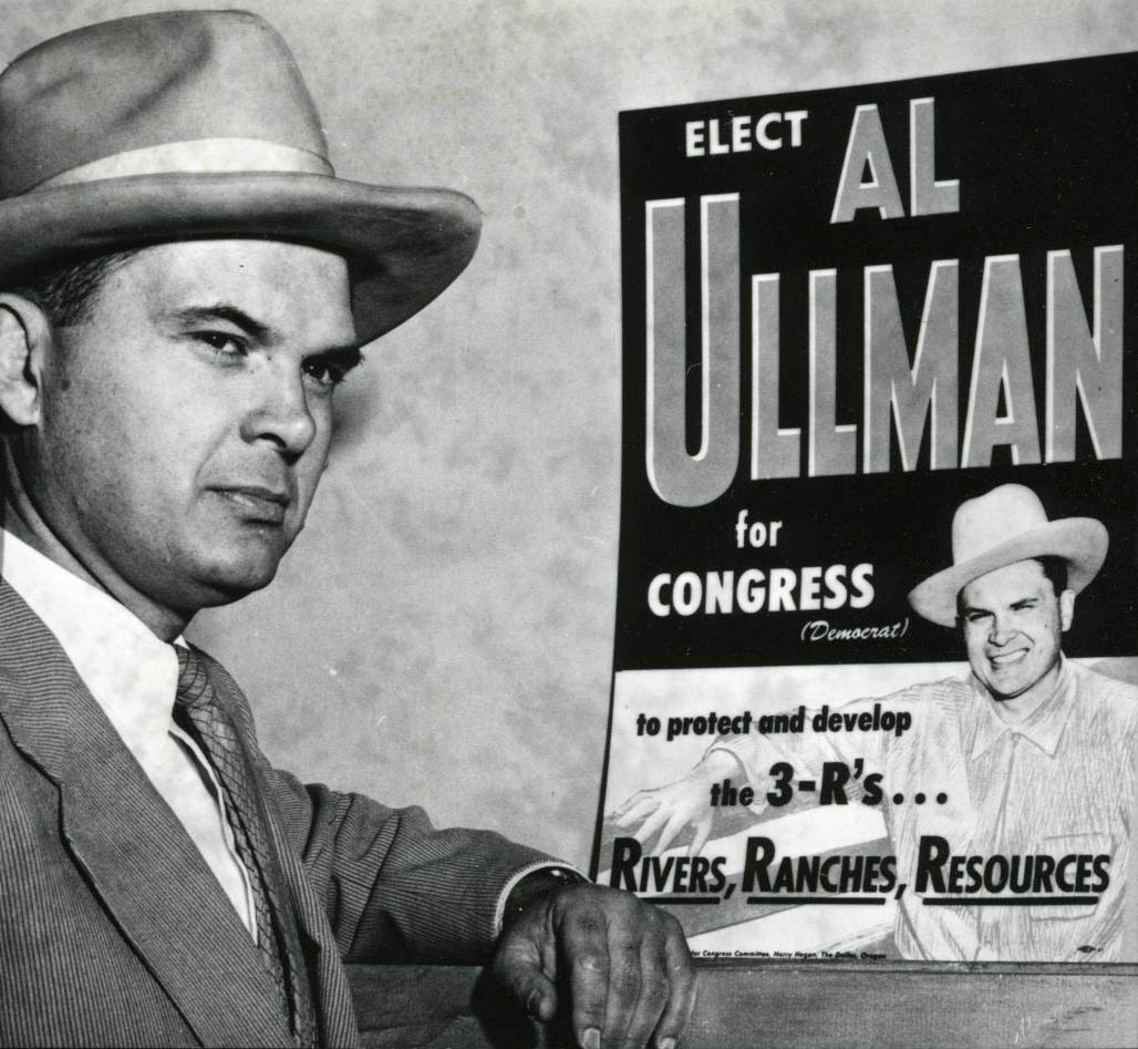 ![]()  Al Ullman with his campaign poster, October 1954. Courtesy Oregon Hist. Soc. Research Lib., 015178