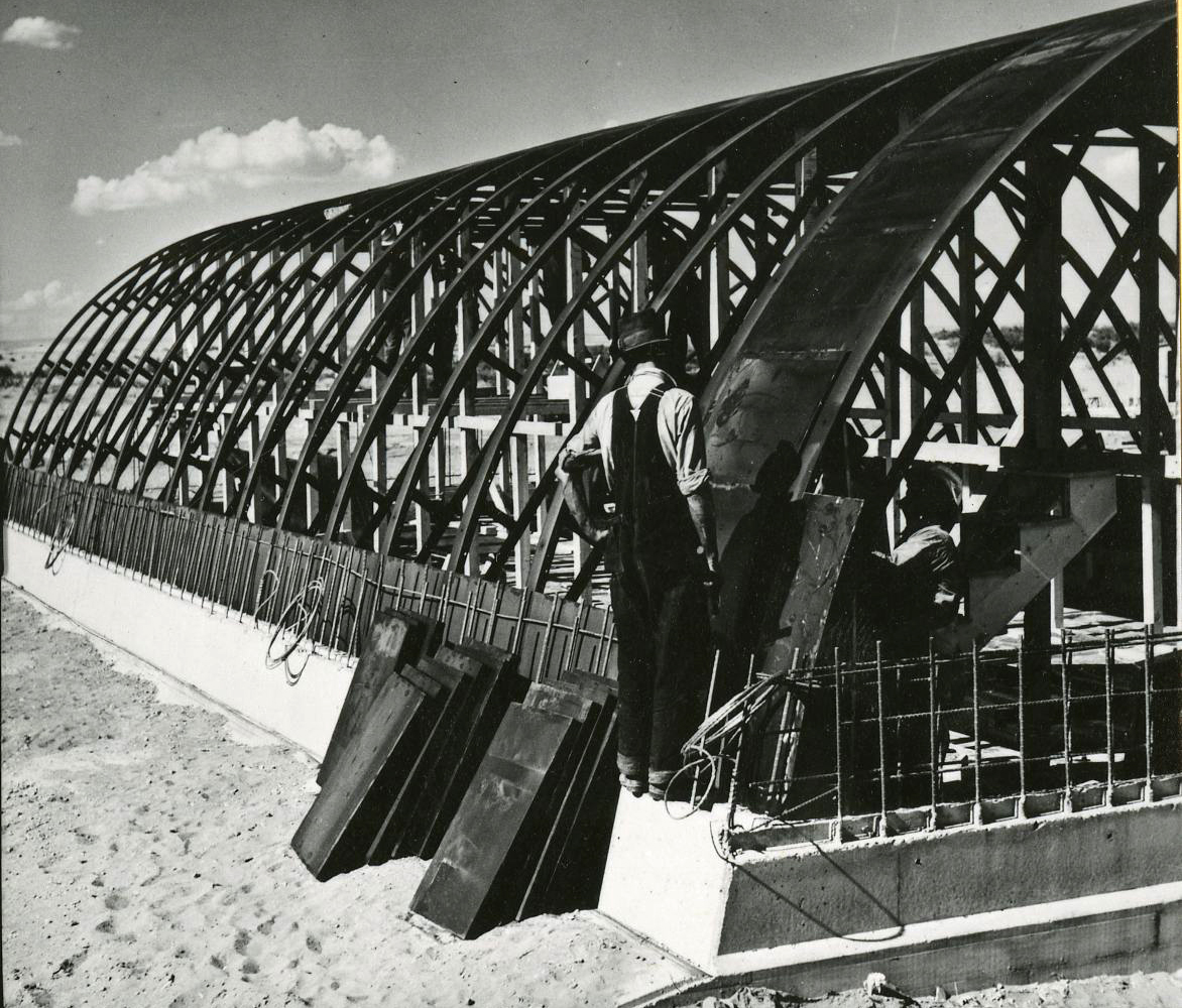 ![]()  Men work on the steel-enforced concrete igloo, 1941. Courtesy Oregon Hist. Soc. Research Lib., 013046