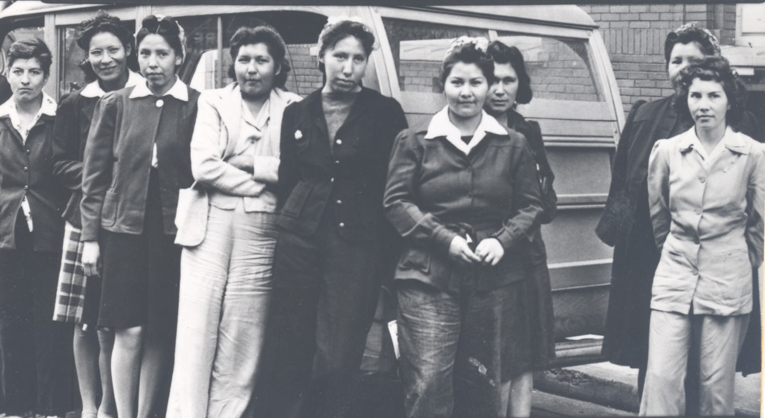 Young women from Chemawa trained at the Eugene National Youth Administration for skilled work in the Portland shipyards, 1942.