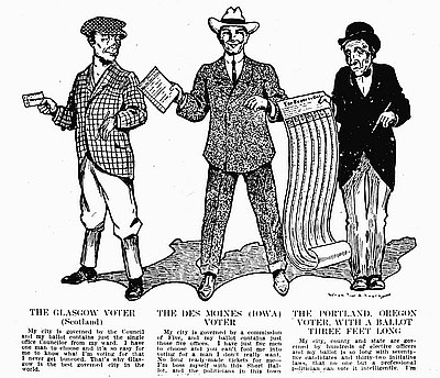 Political cartoon on the Oregon System, by William Schwarz, 1912.