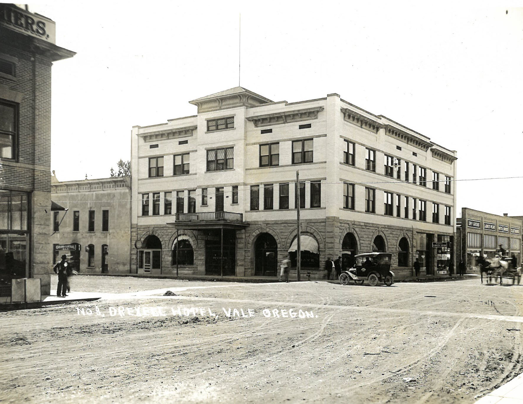 The biggest boom in town construction occurred during the 1910s. The Malheur Valley Railway (as part of the Oregon Short Line) constructed a line between Vale and Ontario in 1907. The Oregon–Washington Railroad and Navigation Company expanded the line and connected Vale to Burns in 1925. Those railroad connections helped distribute Vale’s agricultural produce and livestock throughout the region.