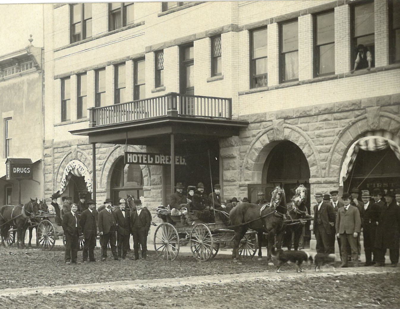 When gold miners arrived in the region beginning in the 1860s, stockmen and businessmen such as Louis B. Rinehart made a living in Vale by supplying beef to miners. Rinehart’s house, constructed in 1872 from locally quarried sandstone, was later used as a hotel, store, post office (1883), and a stagecoach stop (1878). The house, now the Rinehart Stone House Museum, was listed on the National Register of Historic Places in 1972. Other local stone structures include the Vale Hotel and the Grand Opera House (1896), the First Bank of Vale (1901), and the Vale Drug Store (1907).