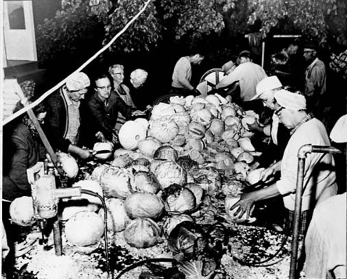 Workers prepare sauerkraut for Verboort Sausage Festival, October 1962.