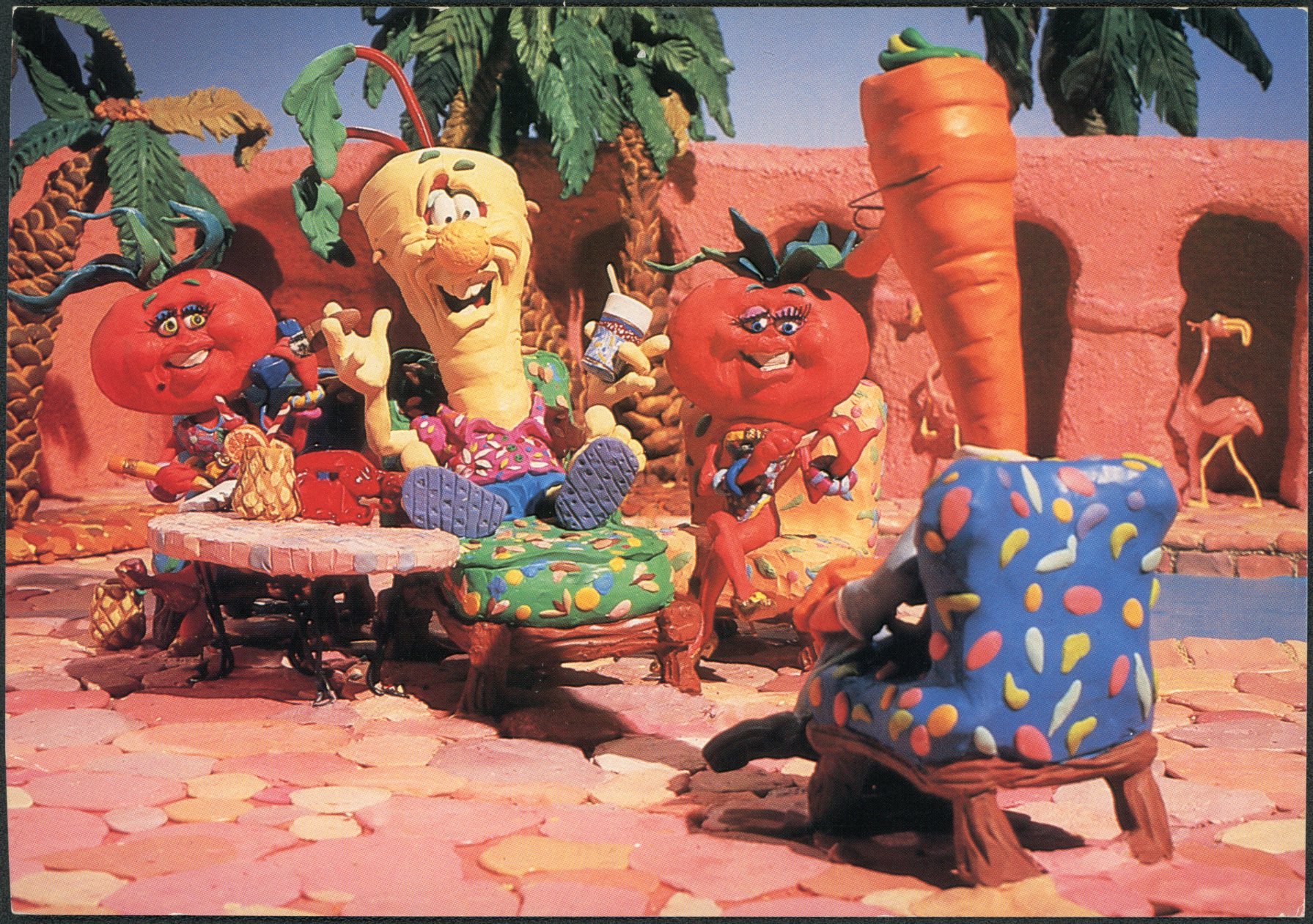 Claymation vegetables promoting a showing of Vinton's CBS special "Meet the Raisins," 1988, in NW Portland..