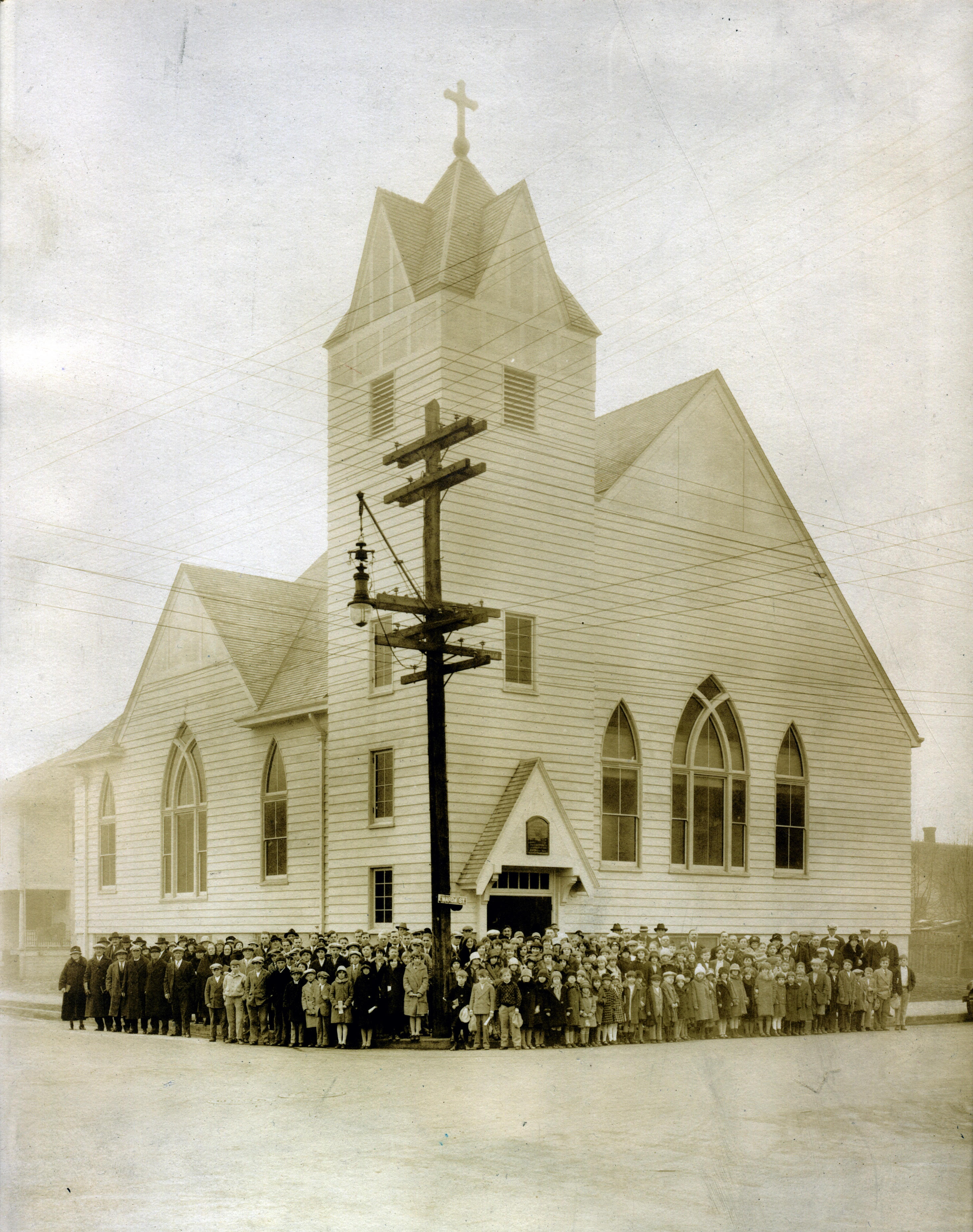 The congregation of the German Evangelical Congregational Brethren Church, NE Mason and Garfield Ave., Portland, c1927.