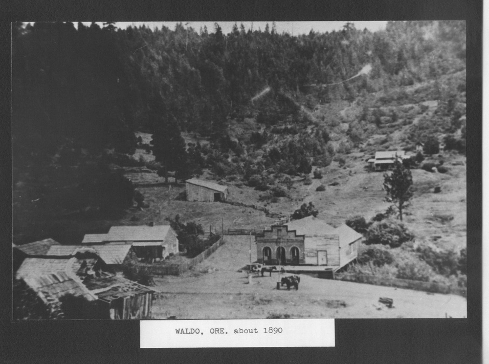 Located just south of Cave Junction and a few miles north of the California state line, the town of Waldo grew out of a large gold-mining settlement first known as Sailor's Diggings. The area was settled in 1852 by sailors who jumped ship in Crescent City, California, and discovered gold on their way to the goldfields in Jacksonville. By 1854, an eleven-mile ditch (constructed by a consortium called Sailors Diggings Water, Mining, and Milling Company) was bringing water to several gulches in the area, and mining activities expanded.
