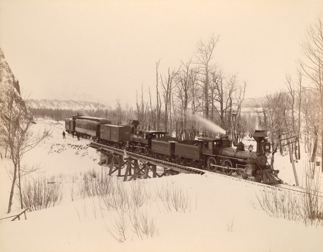 Relief train at Bridal Veil in the Columbia Gorge, 1884.