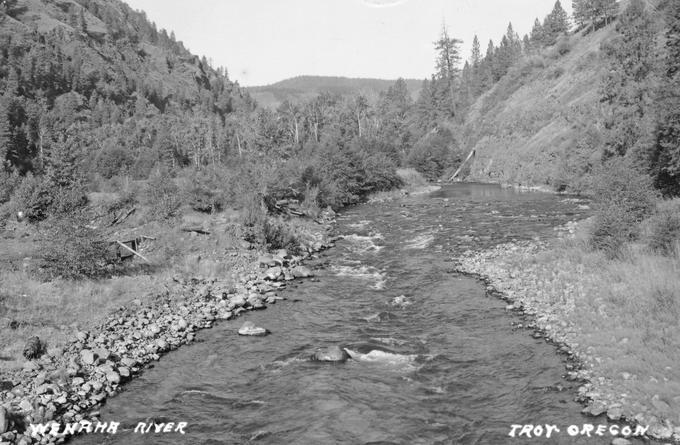 The Wenaha was within the territory of Nez Perce, Cayuse, Walla Walla, and Umatilla peoples. The Cayuse and Umatilla had a camp at the confluence of the north and south forks of the river, where they speared salmon and trout and gathered berries. From the 1820s through the 1840s, the Hudson’s Bay Company tapped the Wenaha region for furs and established a trading post about five miles downstream from the river’s mouth at a place known as Lost Prairie, on a bluff above the Grande Ronde River.