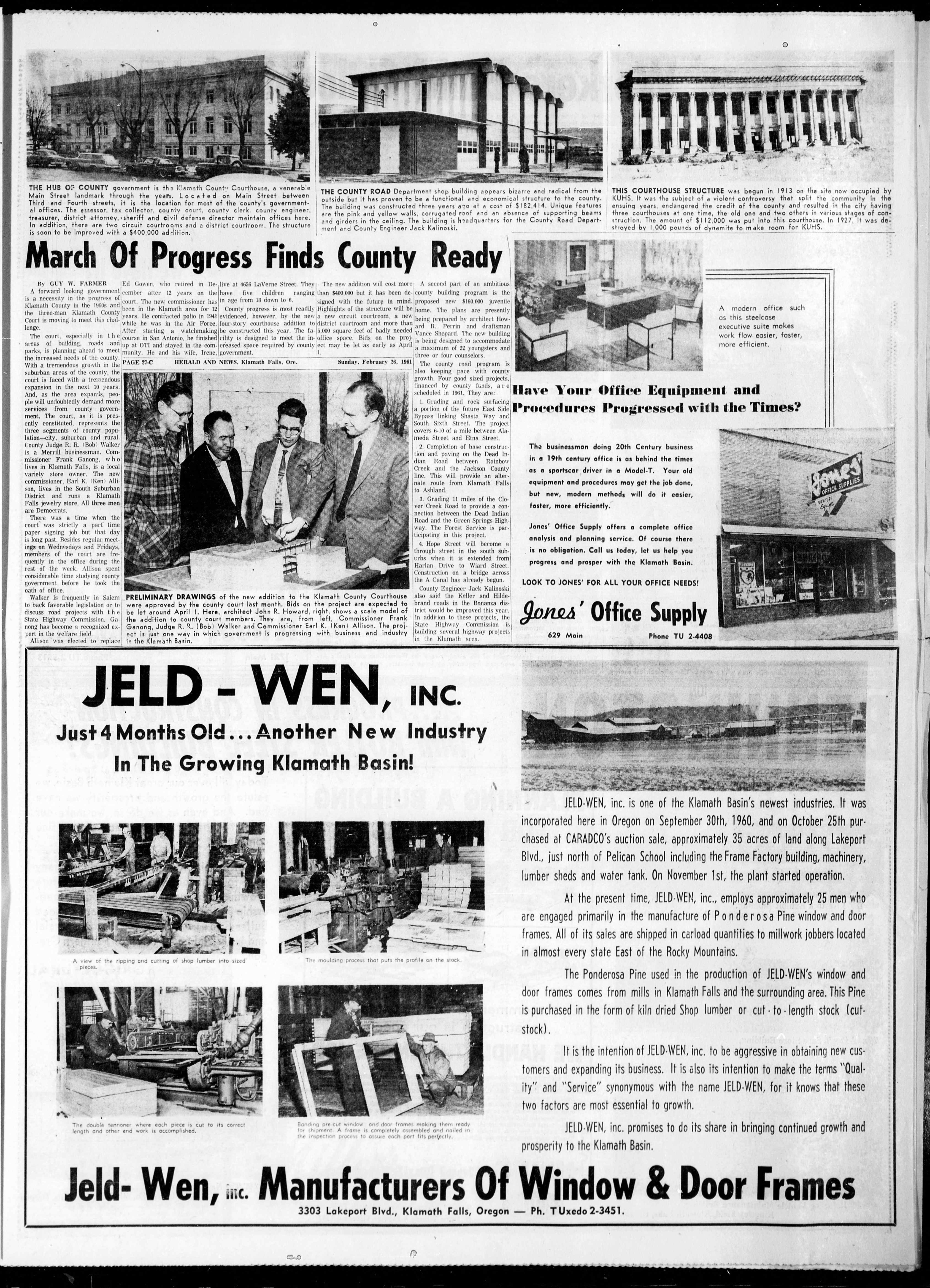 ![]()  Advertisement for JELD-WEN, Inc. in the Klamath Falls Herald and News, February 26, 1961. Courtesy University of Oregon Libraries.