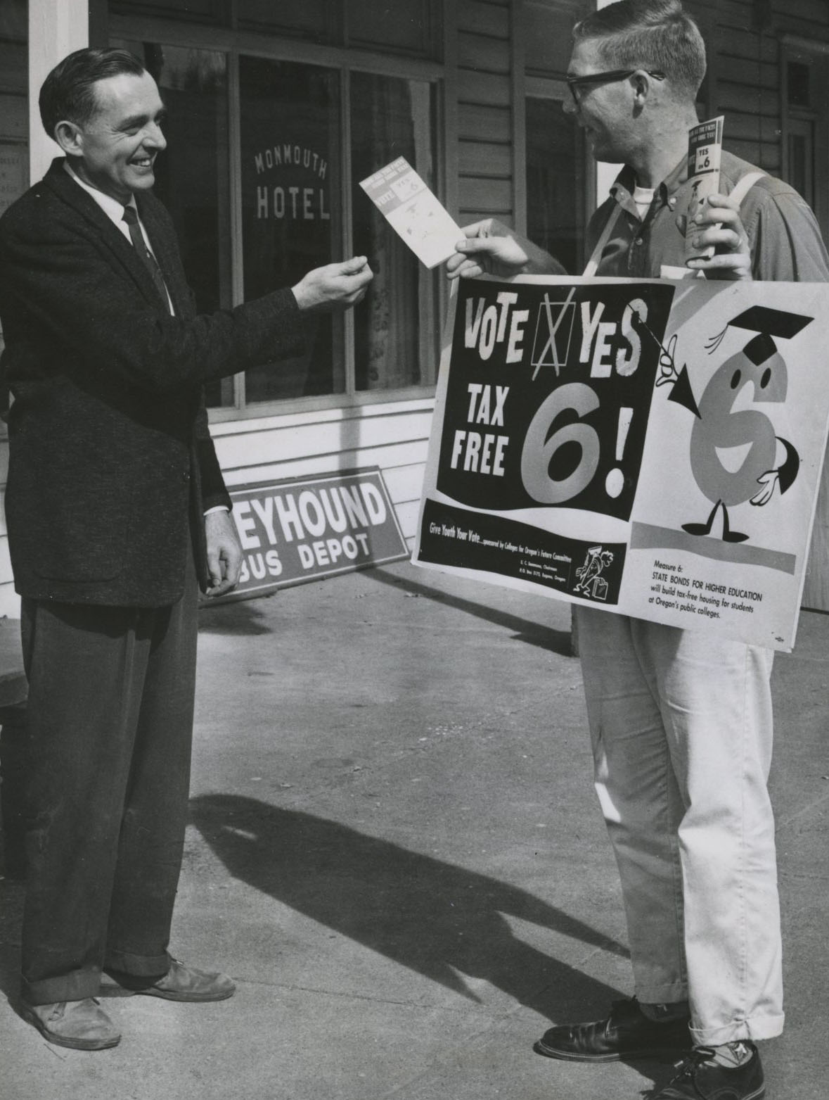 Oregon College of Education student campaigns for a tax-free student housing bond, 1980.