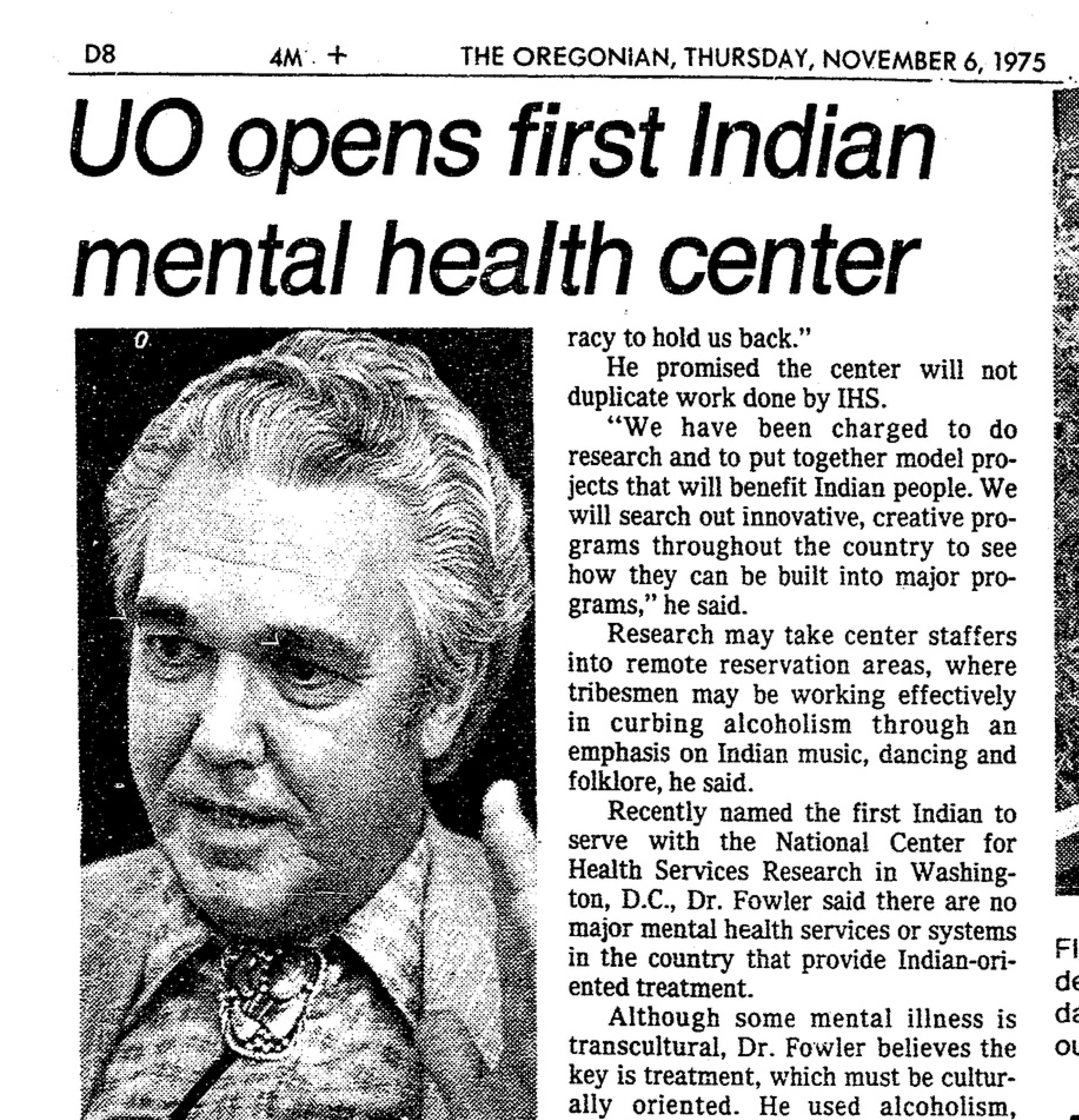 "UO opens first Indian mental health center," Portland Oregonian, Nov. 6, 1975.