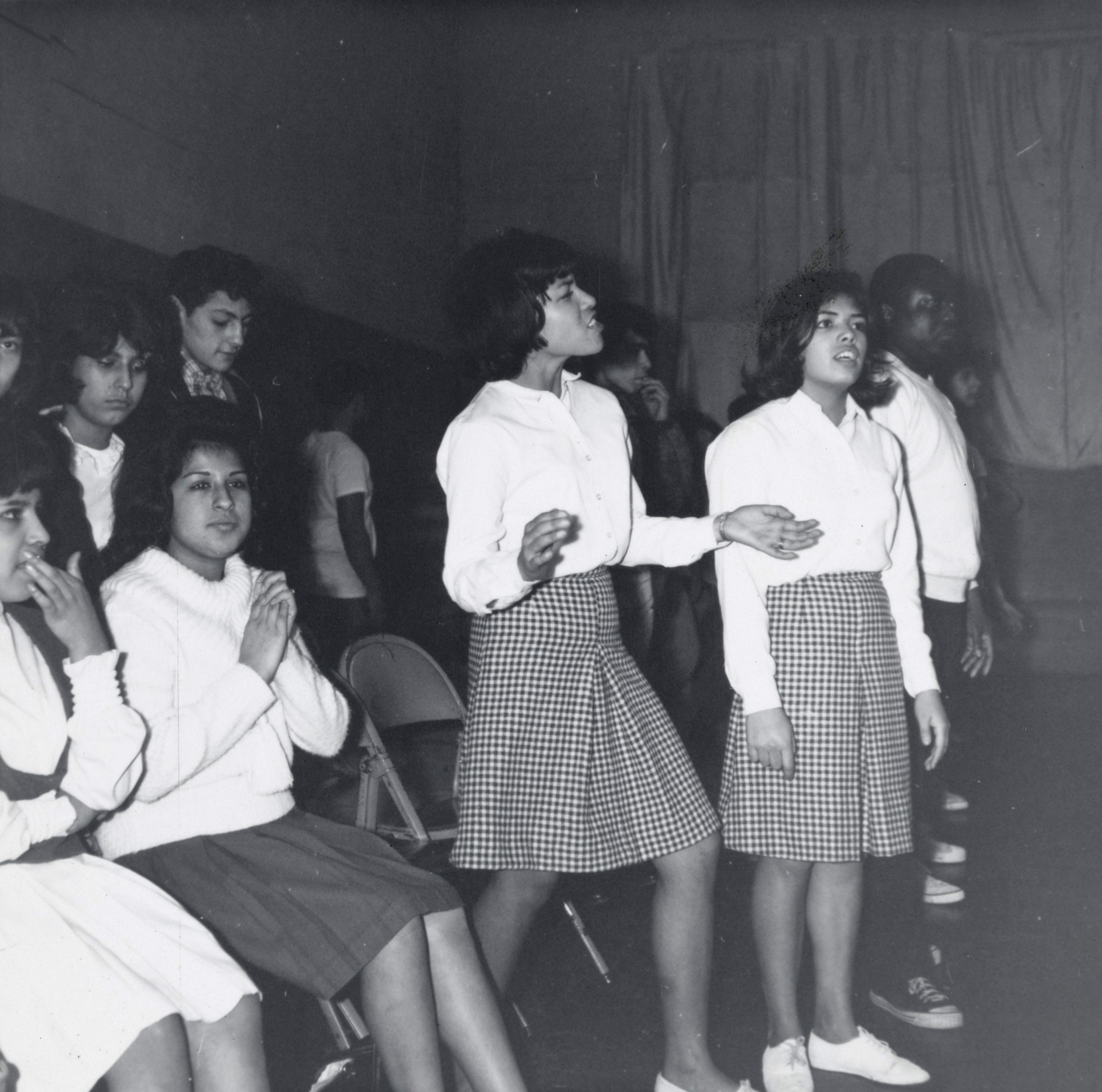 ![]()  Woodburn cheerleaders, 1966. Oregon Historical Society Research Library, OrgLot74_B2F7_003