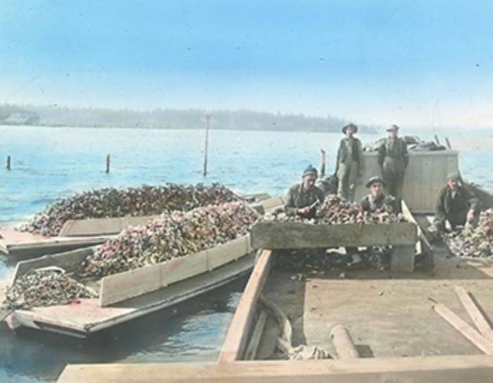 The California-based Winant & Company was probably the first commercial interest to begin harvesting Yaquina Bay oysters. Founded in 1851, the dealer bought and then resold Yaquina Bay oysters in San Francisco. Captain Solomon Dodge, a company agent, established the small settlement of Oysterville on Yaquina Bay in 1863, which was focused on oyster harvesting. Corporal Royal A. Bensell of Fort Hoskins described Oysterville as "built on the steep side of a very high bluff, indeed it seems to be clinging to the mountain side....The shore is lined with floats and boats, and these floats are crowded" with Native women "culling" oysters.