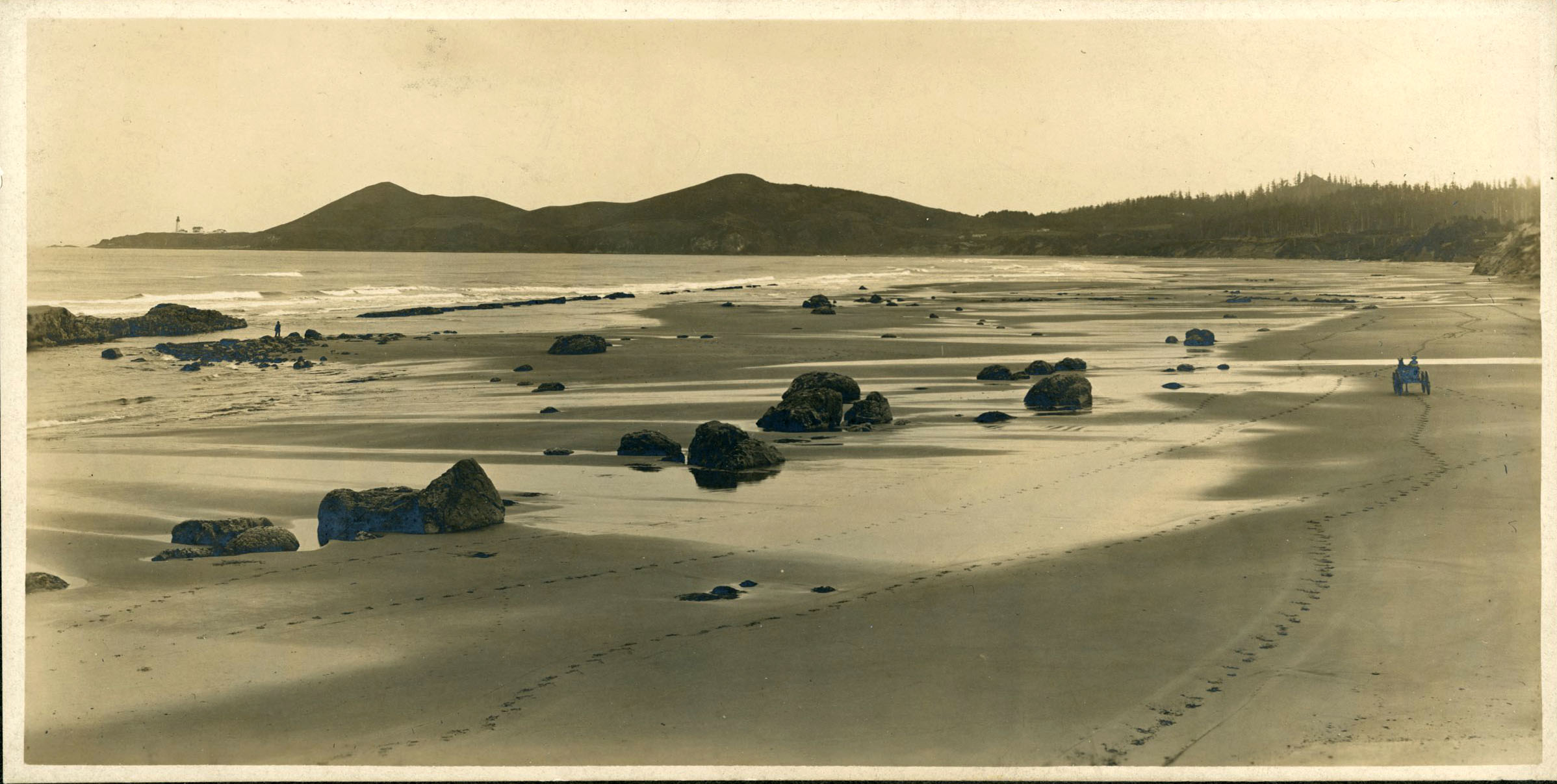 Nye Beach with Yaquina Head Lighthouse in the distance, 1902.