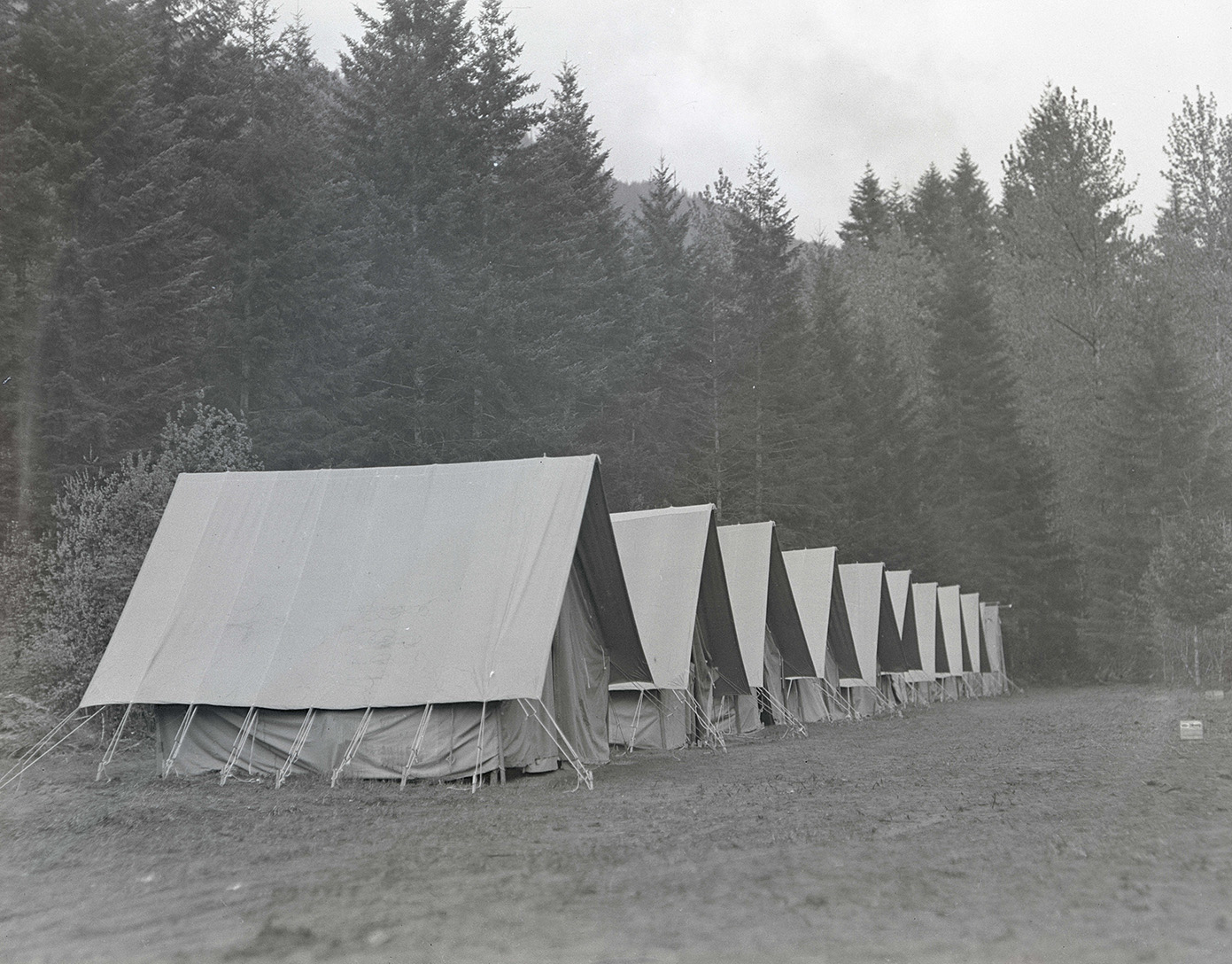 CCC tents at Toll Gate camp, Rhododendron, 1933.